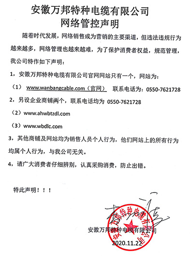 鄭重聲明:安徽萬邦特種電纜有限公司官方網站為:www_wanbangcable_com.wvnkseu.cn,除此之外無任何子網站或合作網站,其余均為假冒偽劣。電話:0550-7621728 13485756353 地 址:安徽省天長市滁州高新技術產業開發區經四路29號